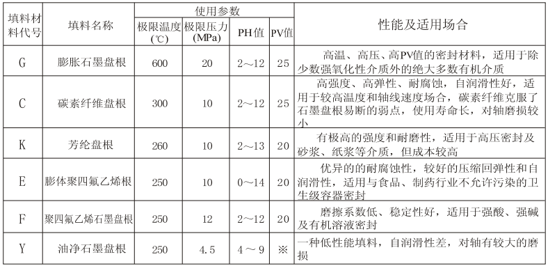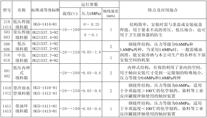填料箱箱代号及特征表